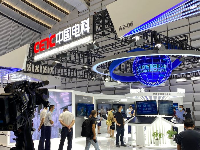 此次展會,中國電科劃分企業形象主屏、網絡安全、網信體系、電子裝備、產業基礎五大展示區進行展示。