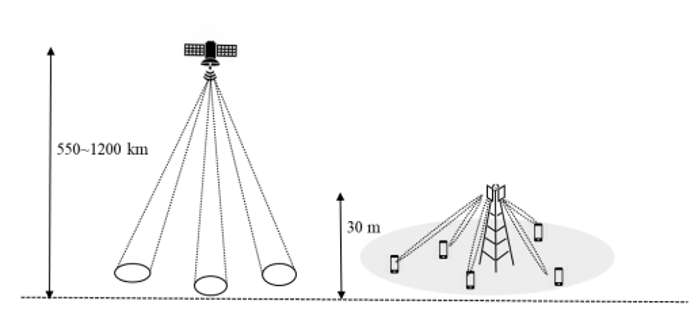 圖 3 衛星波束與蜂窩基站覆蓋方式對比